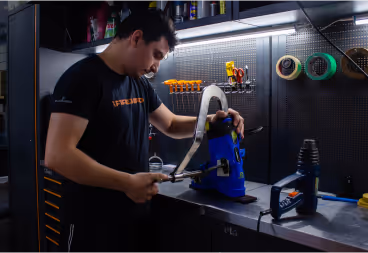Insieme di lavorazioni che permette di modellare lo scafo secondo la conformazione del piede dell’atleta mediante l’utilizzo di frese per l’asportazione di plastica e di apposite formine metalliche per la deformazione a caldo sempre dello scafo.